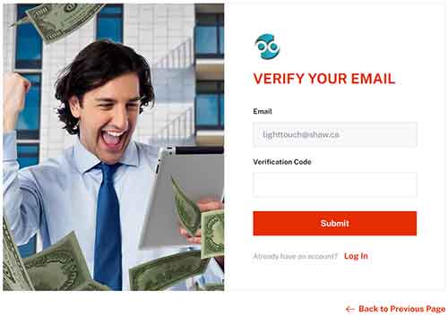 - From the verificatation email we sent, copy/paste the code into the form in your browser and click the SUBMIT button. See image below.